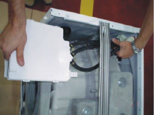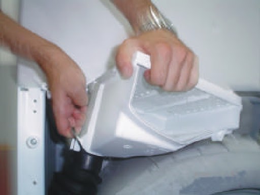 Retirez le bac à lessive et tirer vers le haut avec précaution.