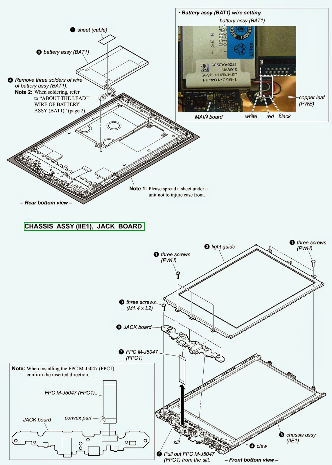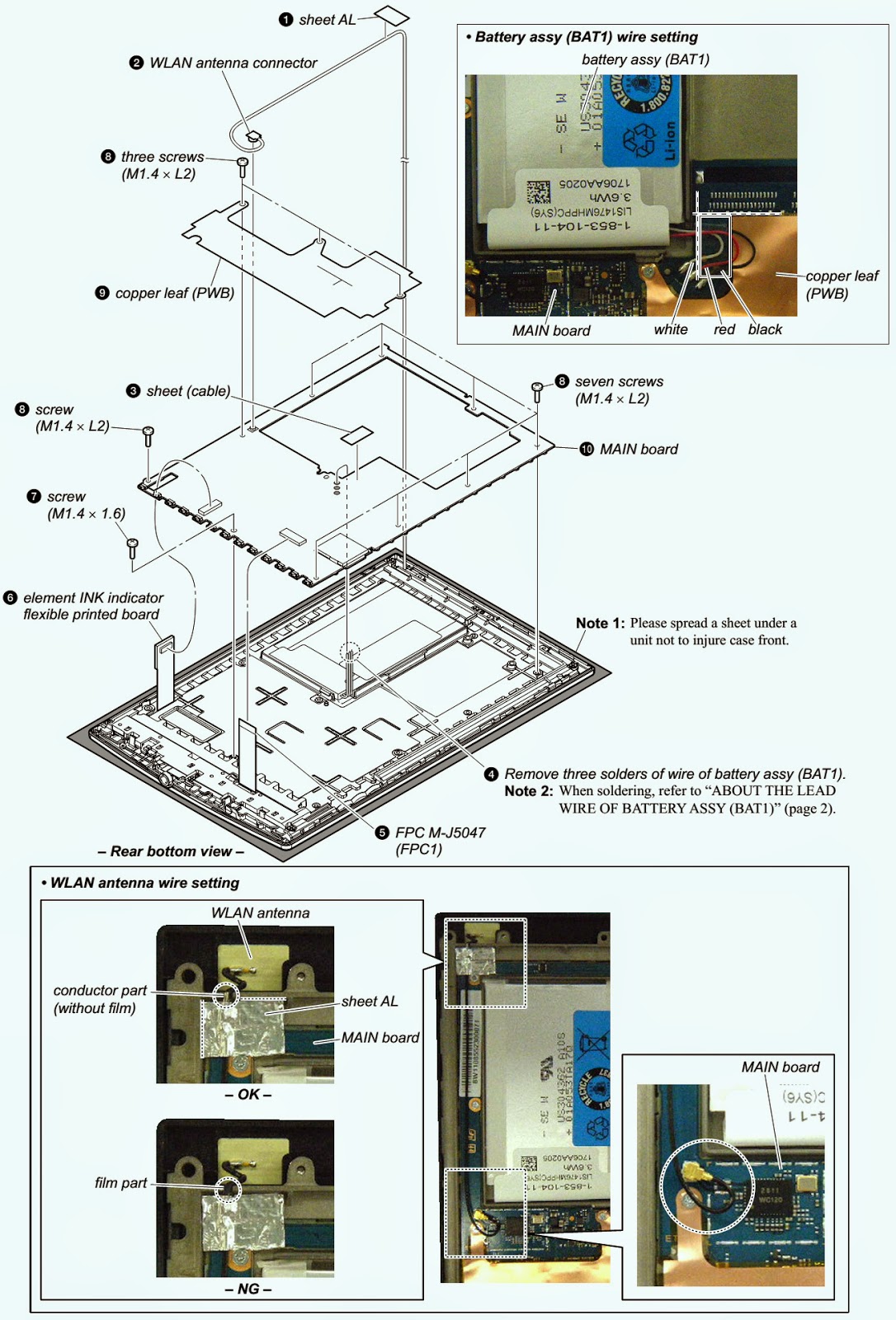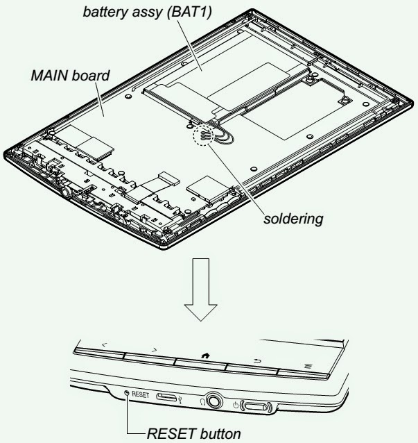 Confirmez l’opération après avoir appuyé sur le bouton du bas de l’unité principale à coup sûr lors de la soudure la ASSY BATTERIE (BAT1) à la carte principale.