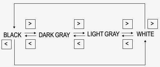 * Appuyez sur les touches [<] / [>], les fichiers d’image sont modifiés.Remarque : S’il n’y a pas de fichiers images, l’écran change de couleur en niveaux de gris. Appuyez sur les touches [<] / [>] clés, les changements de couleur en niveaux de gris séquentiellement comme le montre la figure ci-dessous.