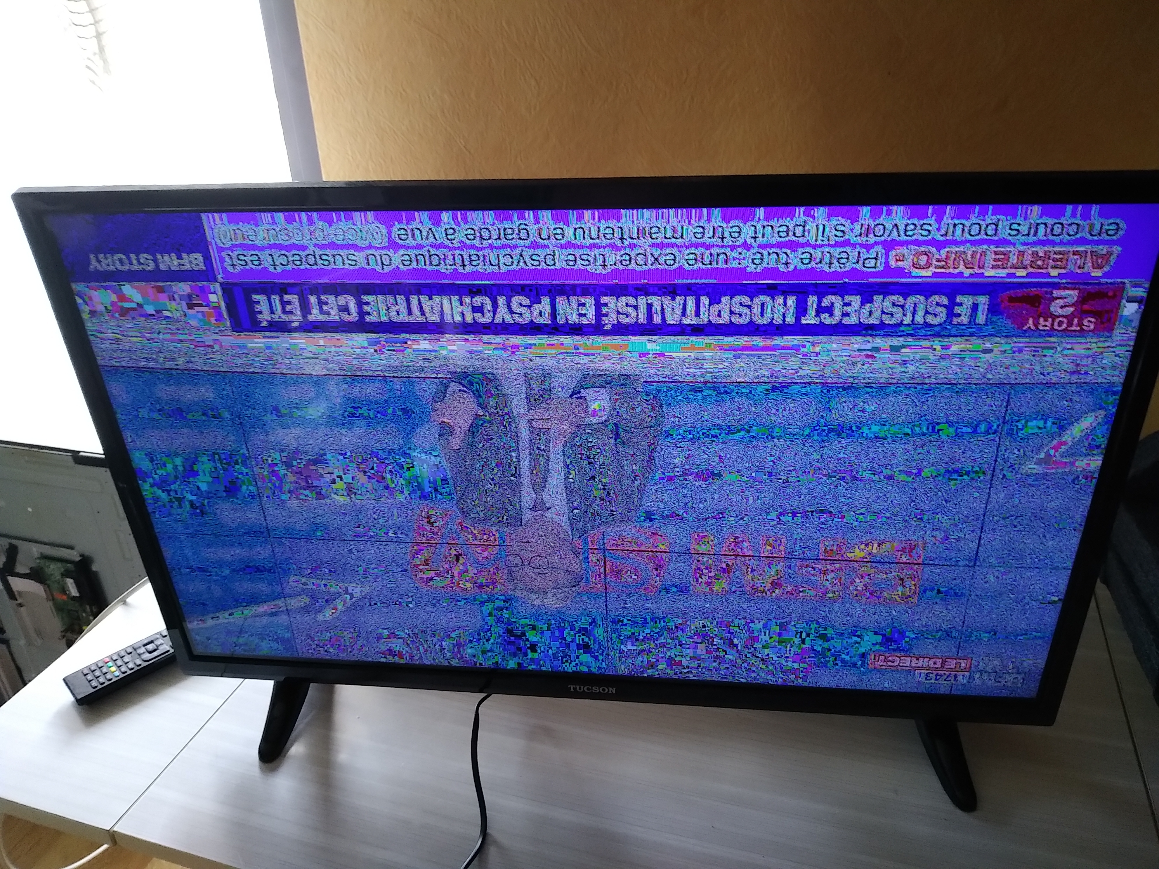 Après pas mal de recherche et de test j’ai trouvé un flash qui fait revivre cette télé. Seul petit problème le logo au démarrage ne correspond pas au logo de la télé. C’est HUNFT à la place de TUSCON, est-il possible de faire une modification dans un service menu avec un autre code que 4725 car celui la ne permet pas de faire grand chose. Je n’ai pas trouvé de flash pour une télé TUSCON avec la référence de ma dalle.