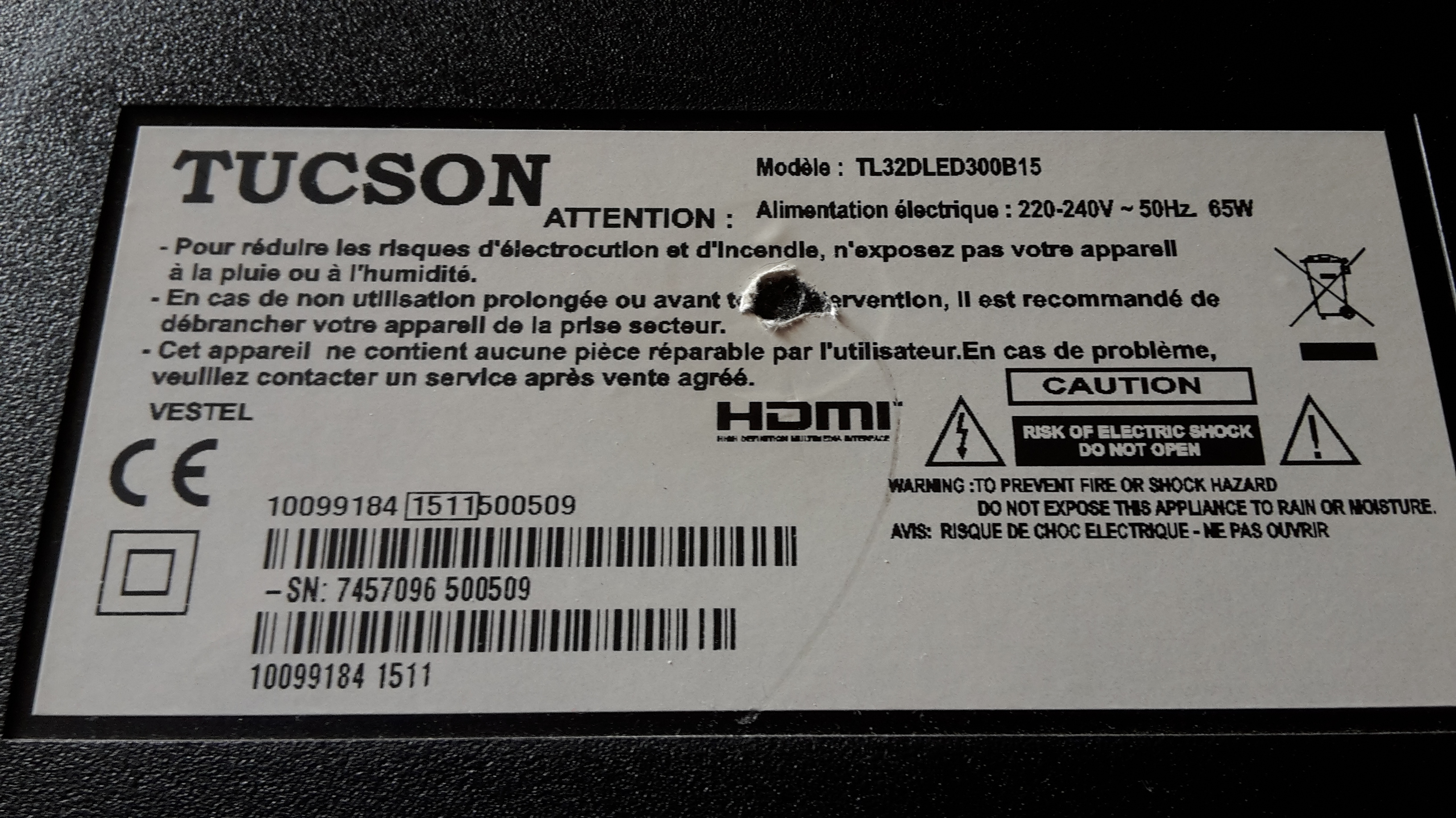J’ai reçu cette télé car le propriétaire m’a dit qu’elle était en panne, pas d’image. Malheureusement il est venu et la télé n’avait plus sa carte mère car pour lui elle était HS. J’ai plusieurs carte mère provenant de 32″ avec des cartes Vestel mais aucune ne fonctionne. N’ayant pas la carte mère d’origine et