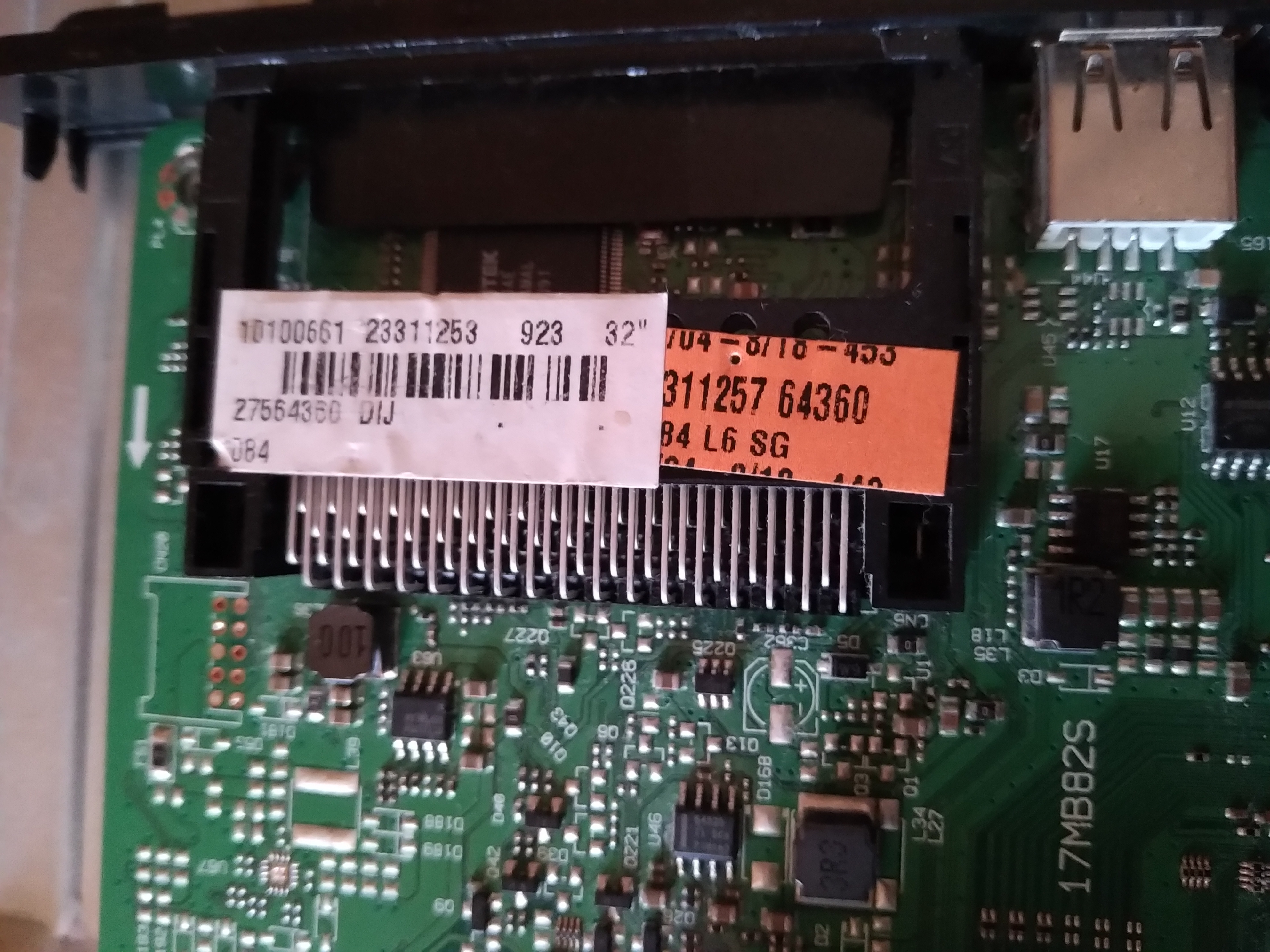 je ne connais pas le modèle exact. D’après mes recherches il semblerait que ce soit une 17MB82S 23366137 mais je n’en suis pas sure et je ne voudrai pas acheter des dizaines de cartes. J’ai fait l’essai avec une 17MB82S 23148929 résultat écran bleu et pas d’image, avec 17MB82S 23311253 l’image est à l’envers et très flou (voir photo).Donc voila je ne recherche que la bonne référence de la carte pour cette télé pour que je puisse la commander, si quelqu’un en a une à vendre je peux être preneur.