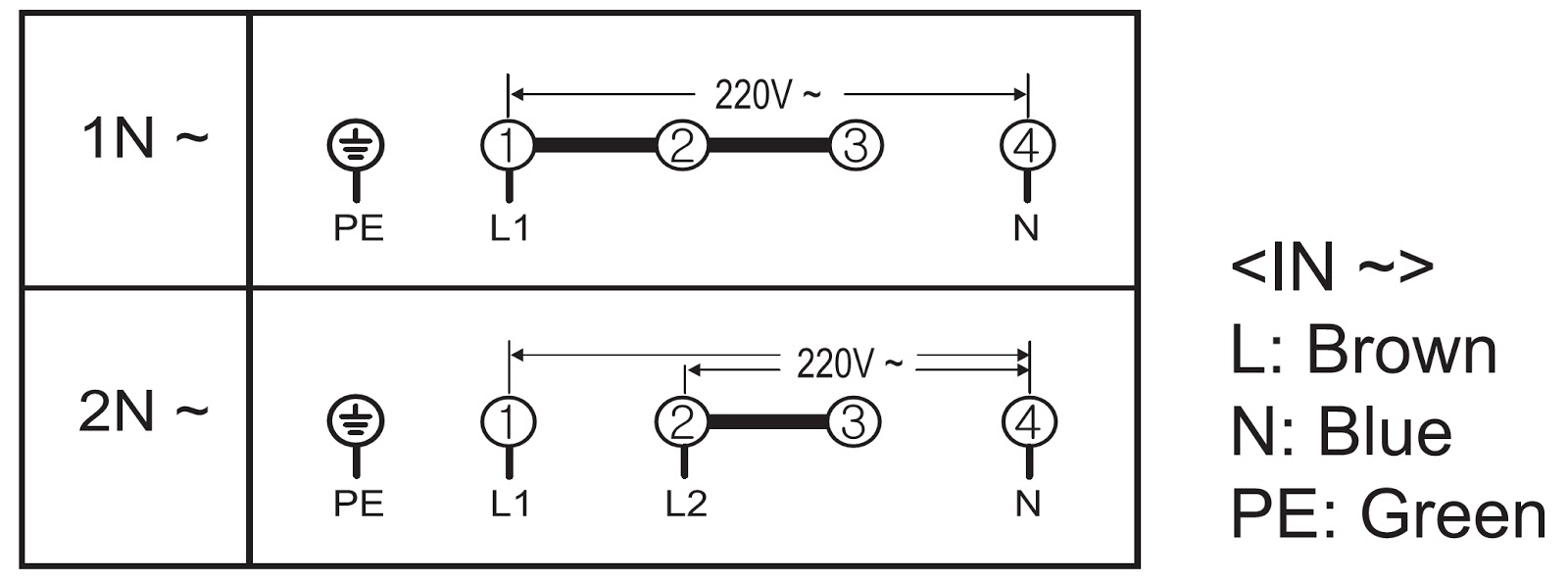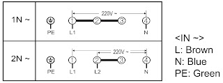 - Le fil de terre est connecté à la borne [GND]. Le conducteur de terre doit être plus long que les fils de phase.